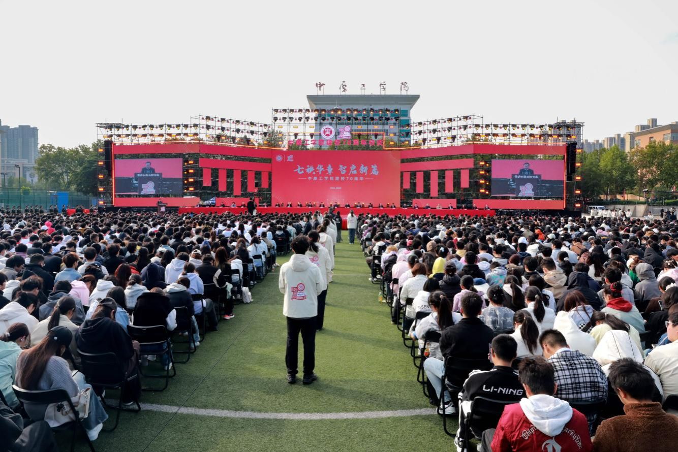 10月18日,中原工学院建校70周年庆典大会在龙湖校区中心体育场隆重举行。各级领导、国内外兄弟院校代表、知名校友、离退休老同志及在校师生代表等4000余人欢聚一堂,共庆学校七十华诞。