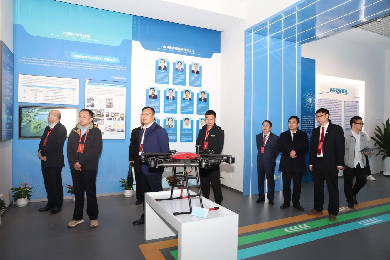 庆典大会结束后,与会领导嘉宾在校领导黄健、宋晓炜、瞿博阳、张爱华、付主木、杨坤、斯雪明陪同下,参观了学校校史馆、科技展厅和低空经济研究院。