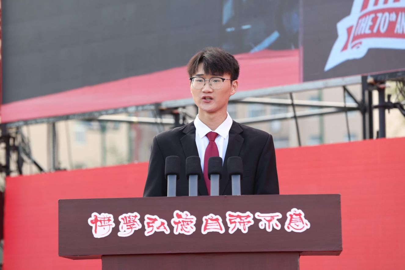 学生代表、经济管理学院工商管理2023级王天赐以在校生视角回顾学校发展历程,感恩学校春风化雨般的培育,致敬老师们“仰之弥高,钻之弥坚”的师者风范,感怀“恰同学少年”的同窗情谊,并表示将珍惜韶华、奋发图强,把个人理想融入学校发展,以实际行动为学校在新征程上谱写更加灿烂的篇章贡献青春力量。