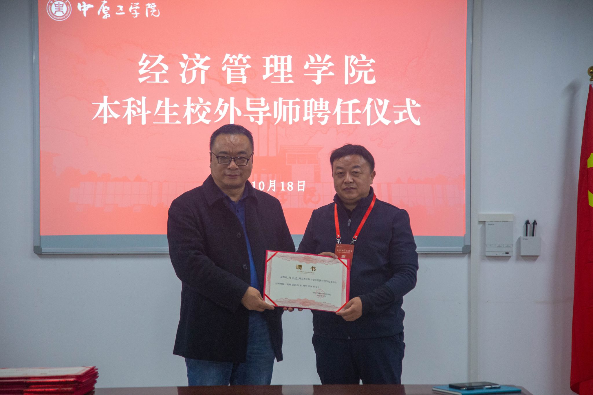 会上,学院与3家校友企业签订校企合作协议,聘请24位校友为“经济管理学院本科生校外导师”。